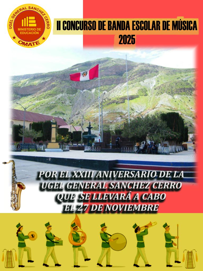 BASES CONCURSO BANDA ESCOLAR 2025 Post navigation Previous CONVOCATORIA N°36 -I.E. N43072-OMATENext Evaluación de Dominio de la Lengua Indígena u Originaria More Stories Comunicados COMUNICADO Nº 031-2025 ADJUDICACIÓN CONTRATACIÓN DOCENTE 2025 I.E. 43124 6 de octubre de 2025 Nitram Comunicados Evaluación de Dominio de la Lengua Indígena u Originaria 6 de octubre de 2025 Nitram Comunicados CONVOCATORIA N°36 -I.E. N43072-OMATE 3 de octubre de 2025 JUNATOR